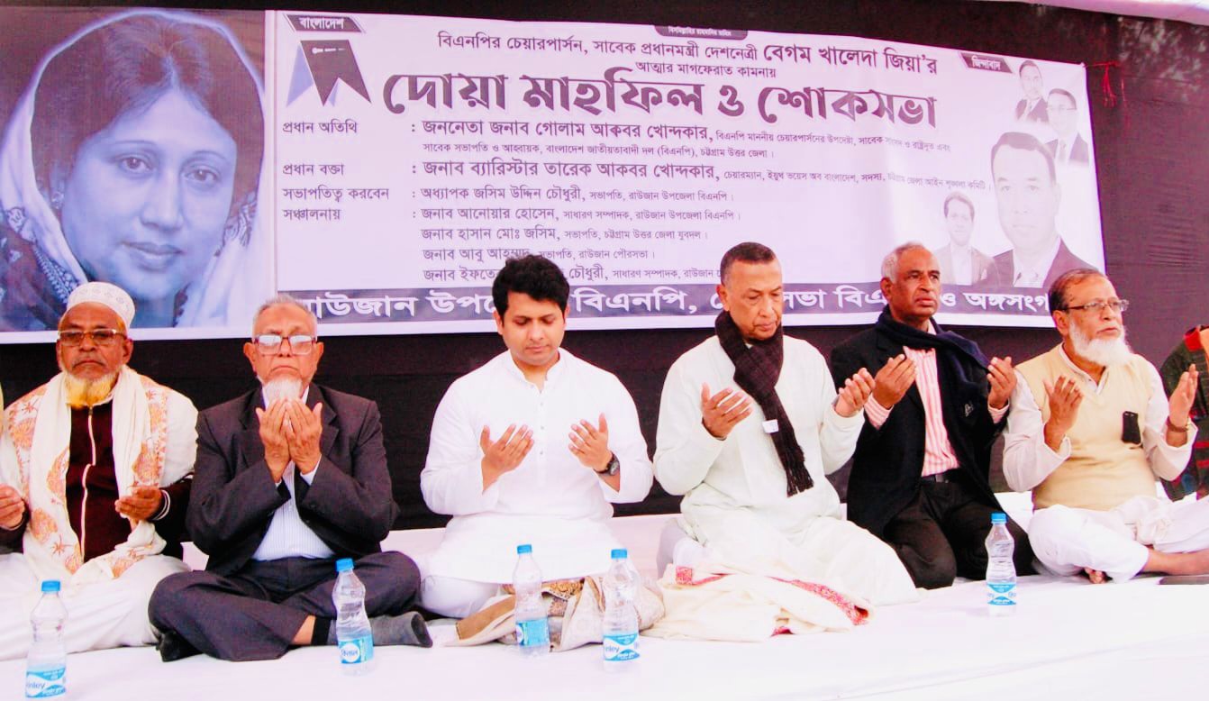 বাংলাদেশের গণতন্ত্রের মা, বিএনপি চেয়ারপারসন ও সাবেক তিনবারের প্রধানমন্ত্রী দেশনেত্রী বেগম খালেদা জিয়ার স্মরণে দোয়া মাহফিল অনুষ্ঠিত হয়েছে। রোববার (৪ জানুয়ারি) বেলা ১১ টায় রাউজানের গহিরায়, চট্টগ্রাম-৬ (রাউজান) আসনে বাংলাদেশ জাতীয়তাবাদী দল (বিএনপি) মনোনীত প্রার্থী গোলাম আকবর খোন্দকারের বাসভবনস্থ মাঠে বিশাল শোকসভা ও দোয়া মাহফিল সম্পন্ন হয়েছে।