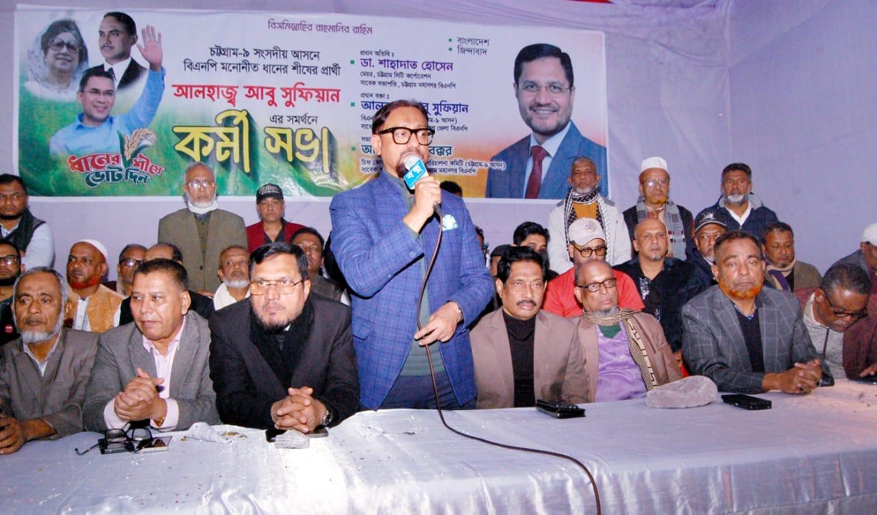তিনি বুধবার (৭ জানুয়ারী) বিকালে কাজীর দেউরী নাসিমন ভবনস্থ দলীয় কার্যালয়ের মাঠে চট্টগ্রাম ৯ আসনের বিএনপি মনোনীত ধানের শীষের প্রার্থী আলহাজ্ব আবু সুফিয়ানের সমর্থনে ৯ আসনের অন্তর্ভুক্ত ১৪টি ওয়ার্ডের কর্মী সভায় প্রধান অতিথির বক্তব্যে এসব কথা বলেন।